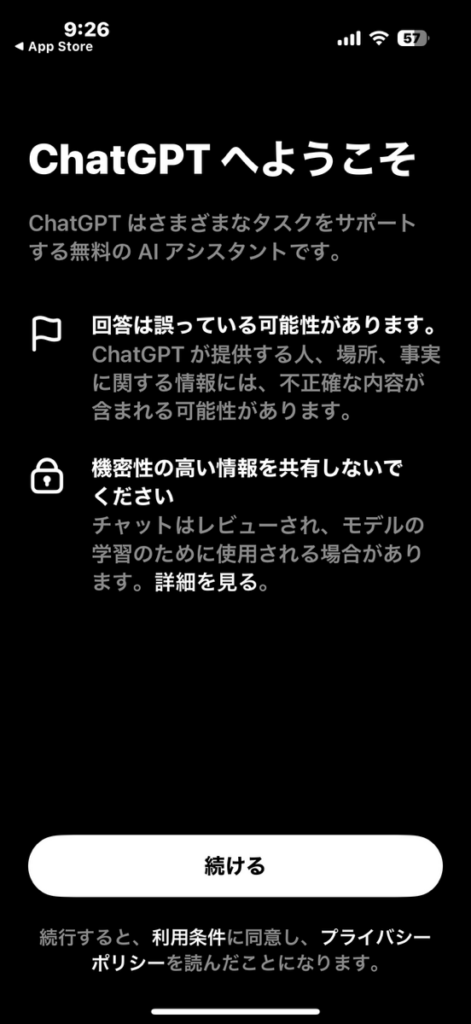 基本的な流れはPCと同じですが、スマホではChatGPTアプリをインストールすることでスムーズに進めることができます。